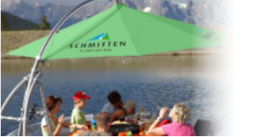 Auch der Schirm des bbq-donut® kann mit Werbedruck versehen werden. Aufgrund verschiedener Drucktechniken erstellen wir Ihnen dazu gern ein individuelles Angebot. Die Kosten liegen je nach Druckart zwischen 900€ bis ca. 1.500€.